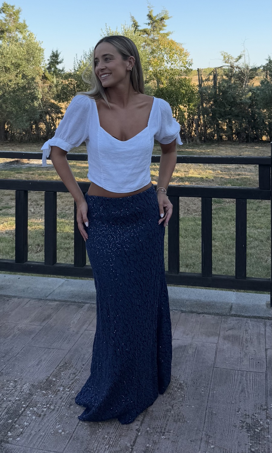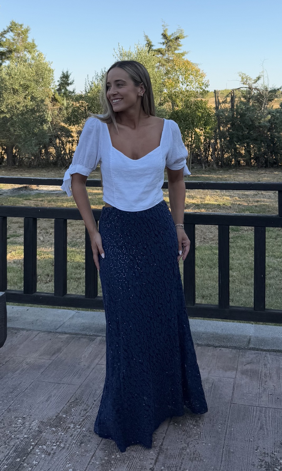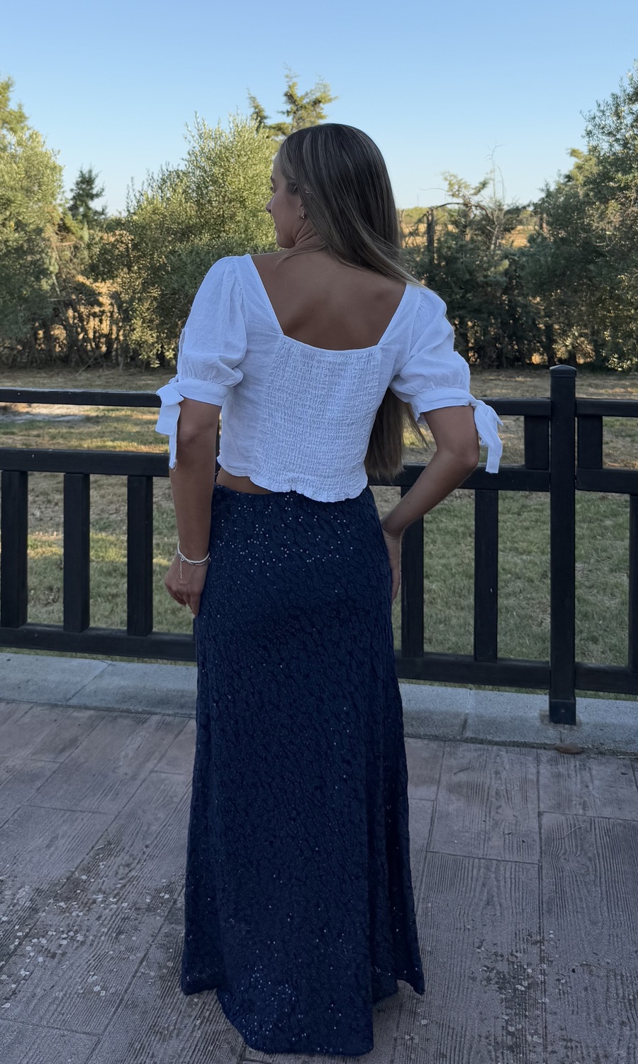 SAIA DE LANTEJOULAS AZUL-MARINHO