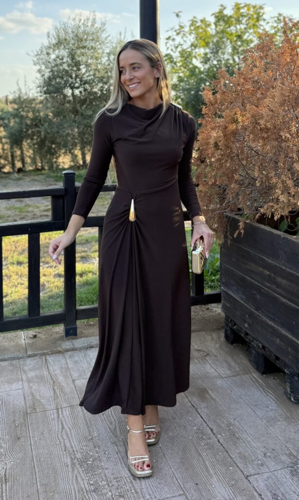 VESTIDO MANGA LARGA ABALORIO MARRÓN