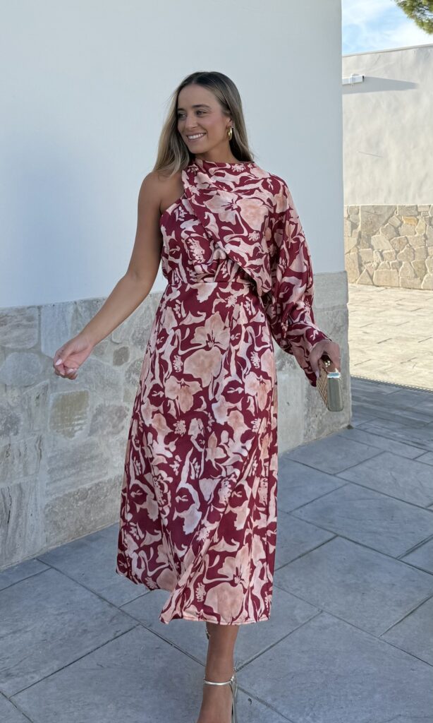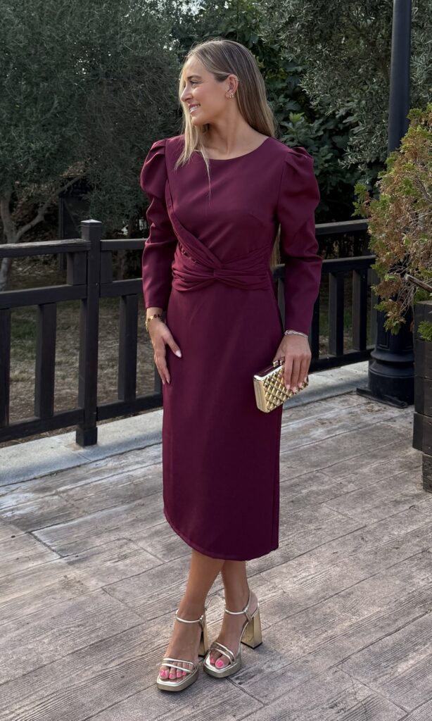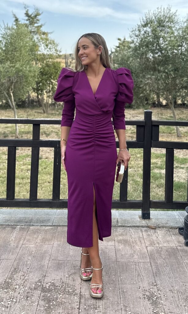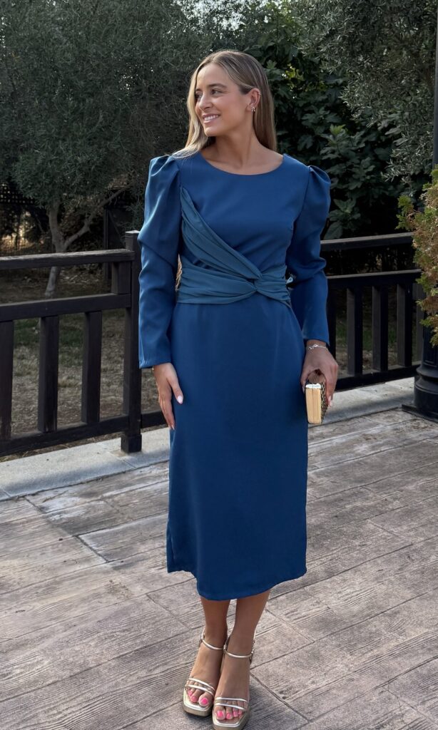 VESTIDO MANGA ABULLONADA PETRÓLEO