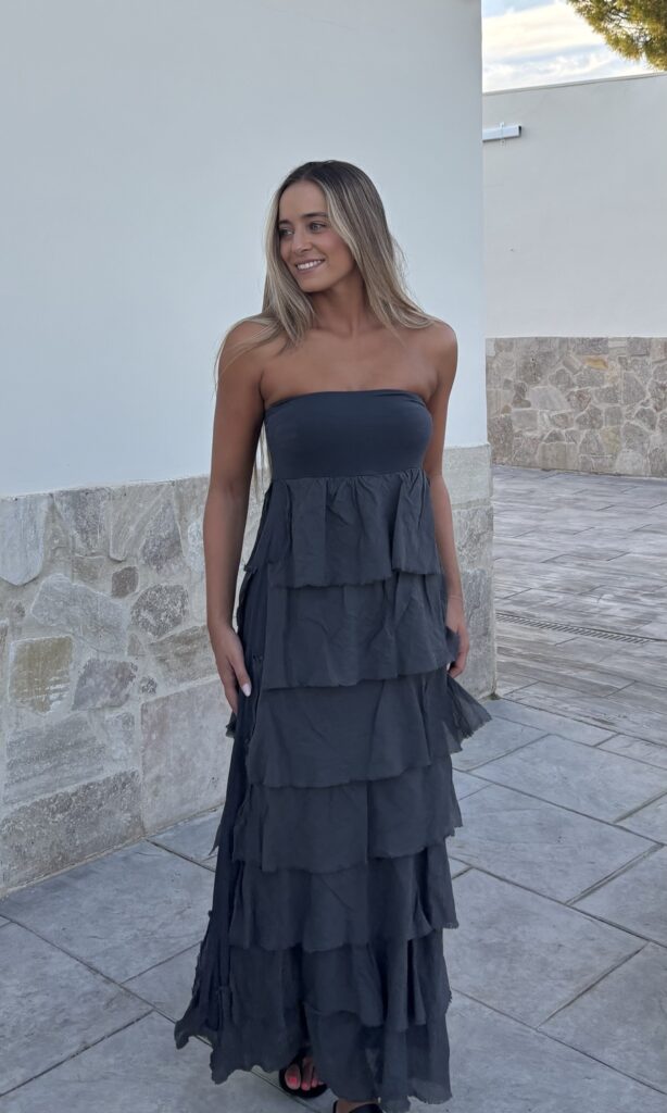VESTIDO APERTURA ESPALDA PETRÓLEO