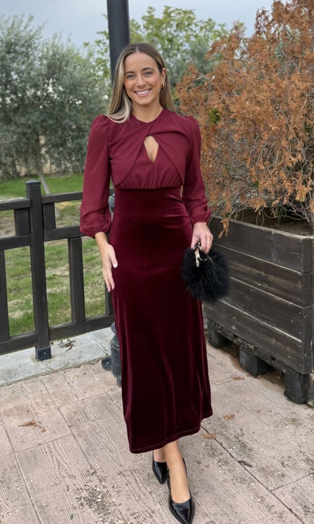 VESTIDO GASA Y TERCIOPELO BURDEOS