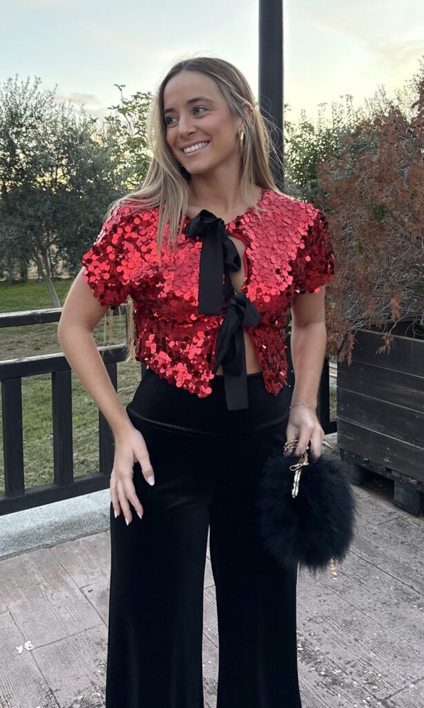 VESTIDO MINI TIRANTE LENTEJUELA ROJO
