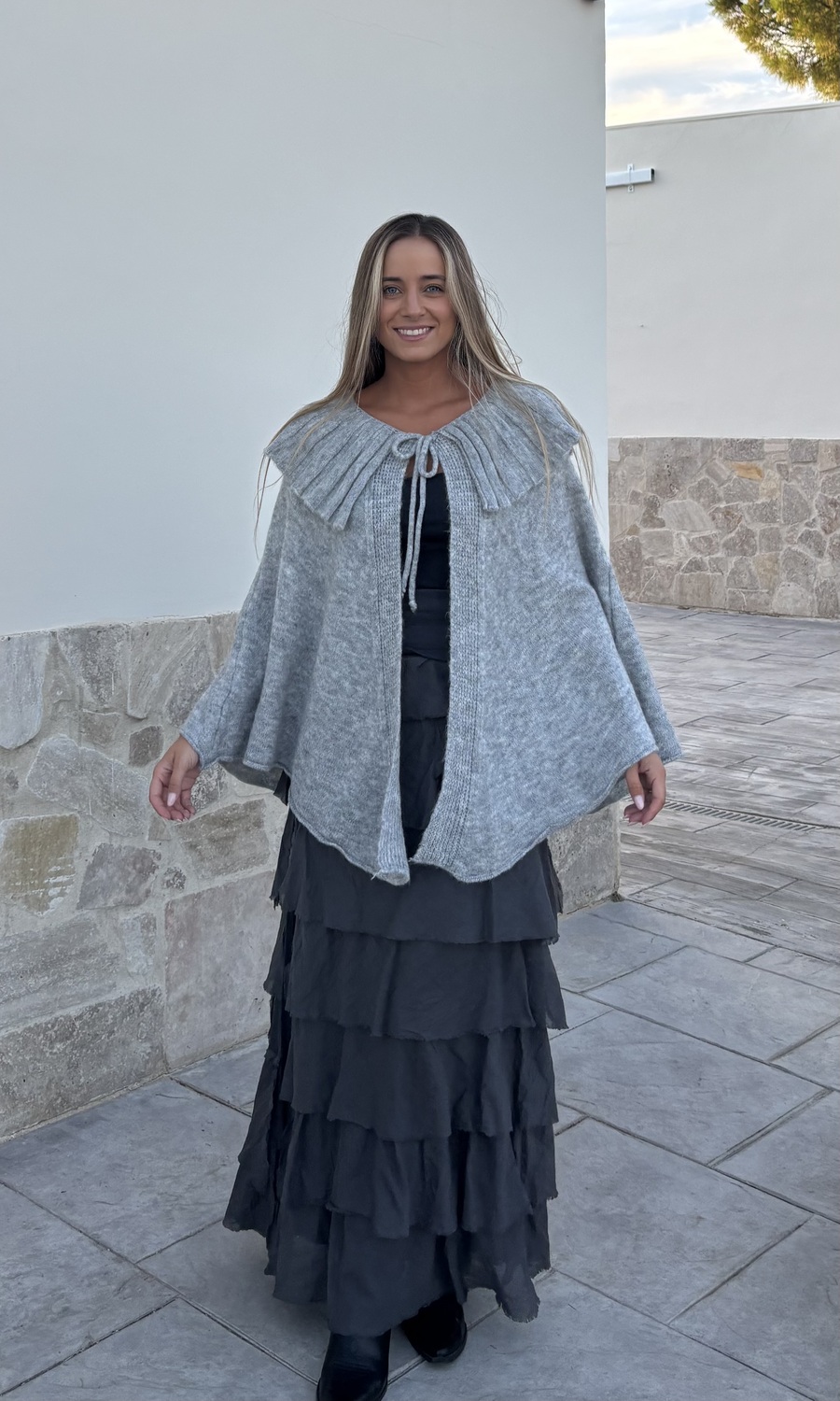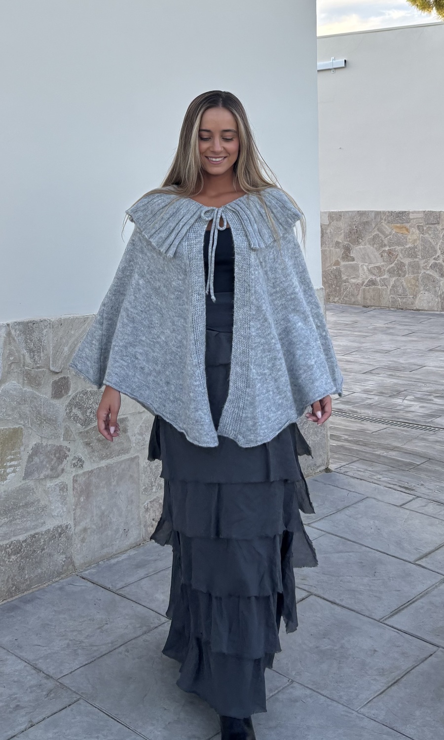 PONCHO DE MALHA CINZENTO