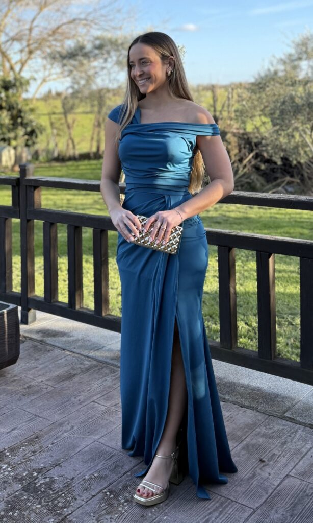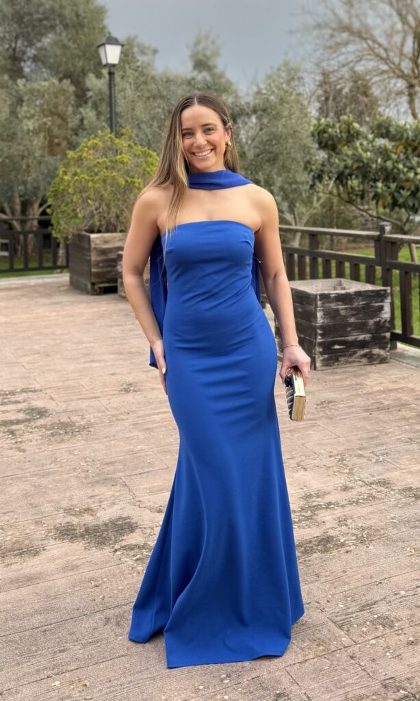 VESTIDO LARGO FRUNCIDO AZUL ELÉCTRICO