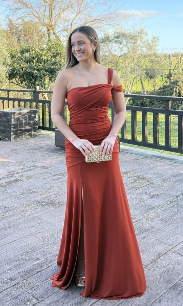 VESTIDO LARGO FRUNCIDO TEJA