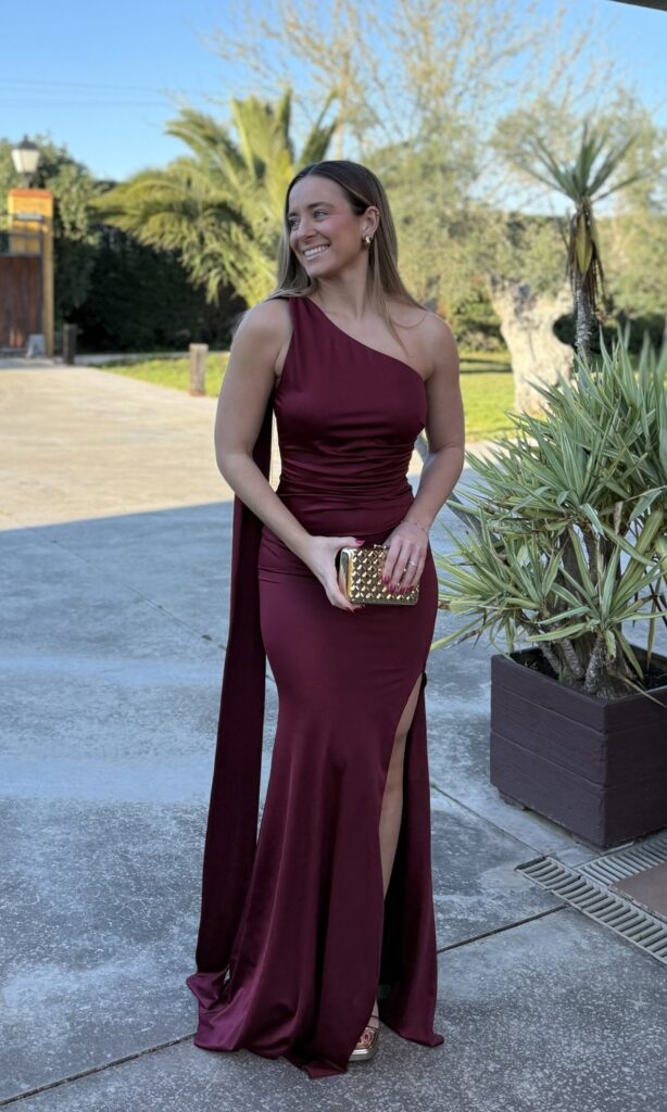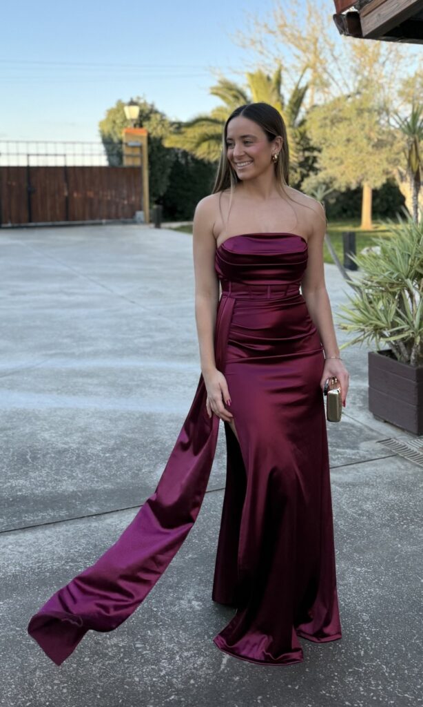 VESTIDO LARGO LAZADA BURDEOS