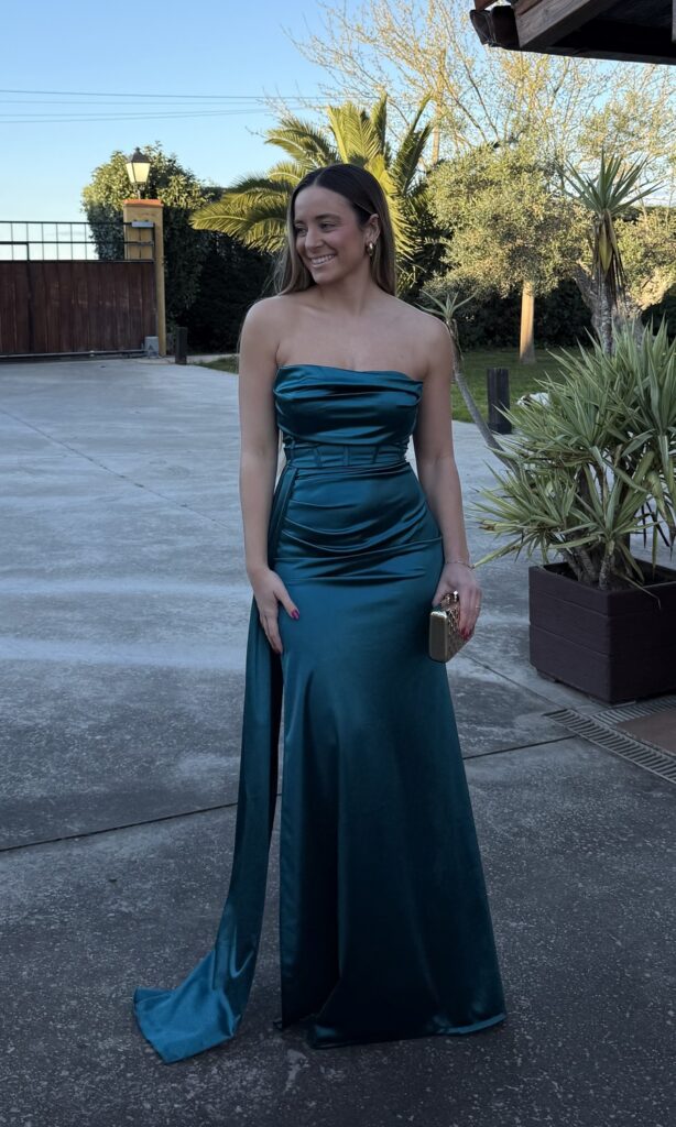 VESTIDO SATINADO CORSET PETRÓLEO