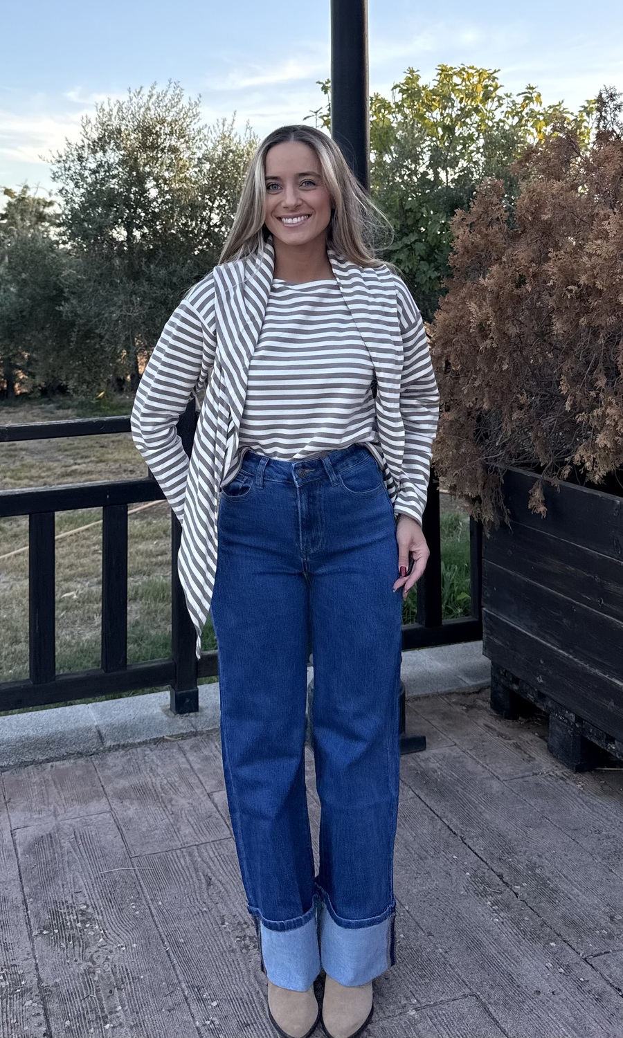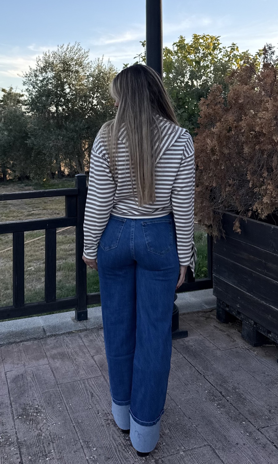 Vaquero wide leg. El dobladillo de abajo viene cosido.