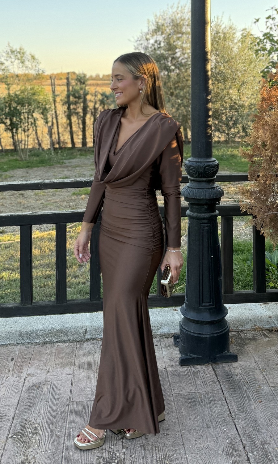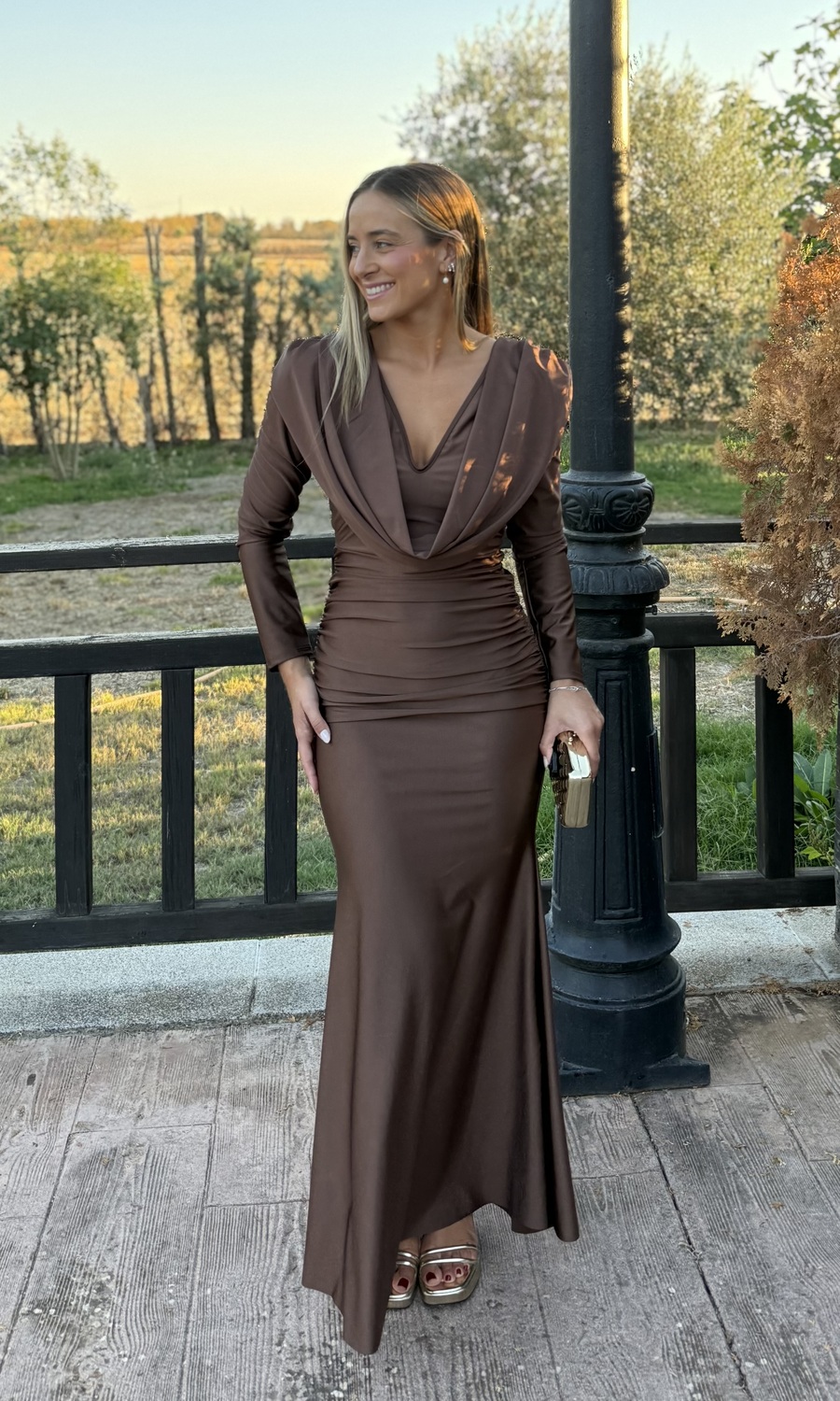 VESTIDO LARGO AJUSTADO MARRÓN