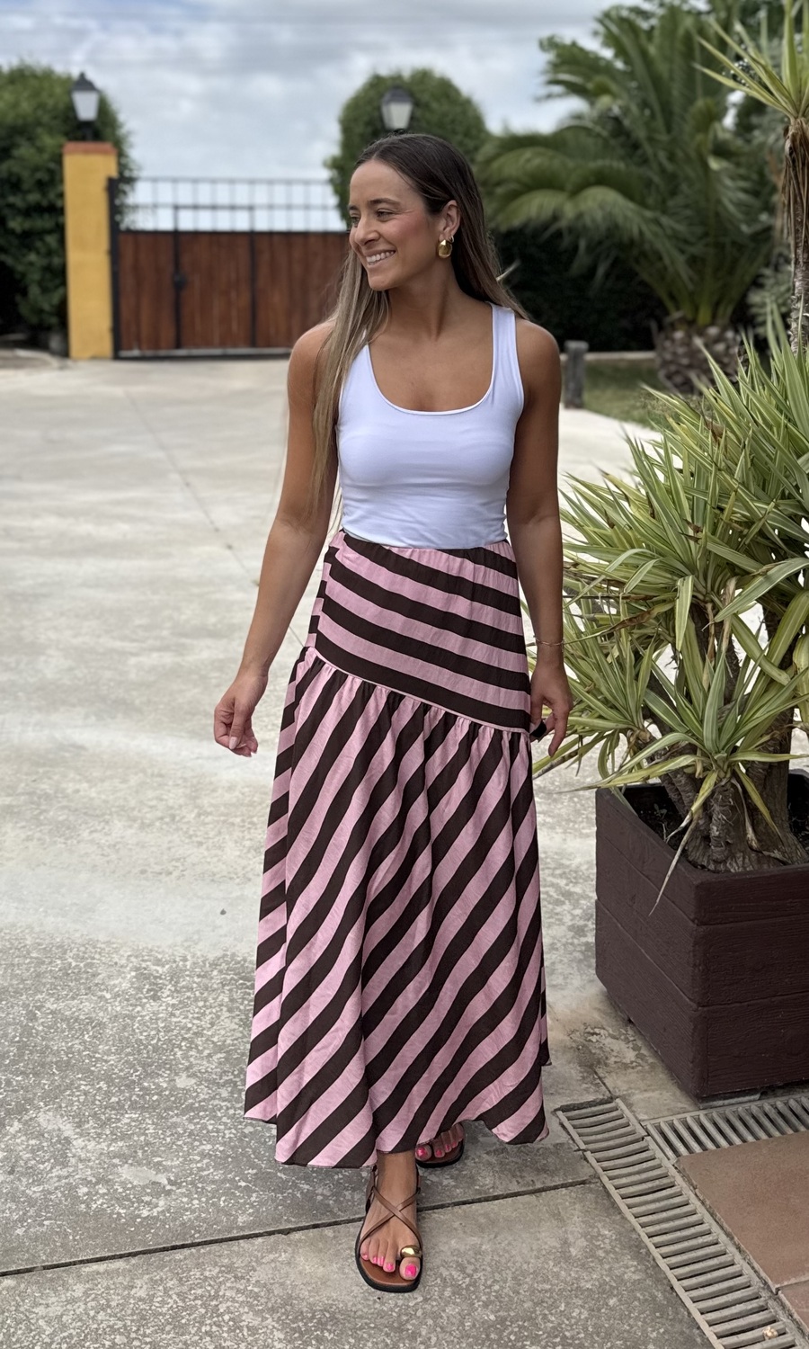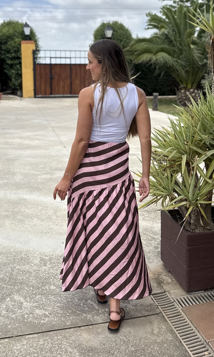 FALDA LISTAS ROSA-MARRÓN