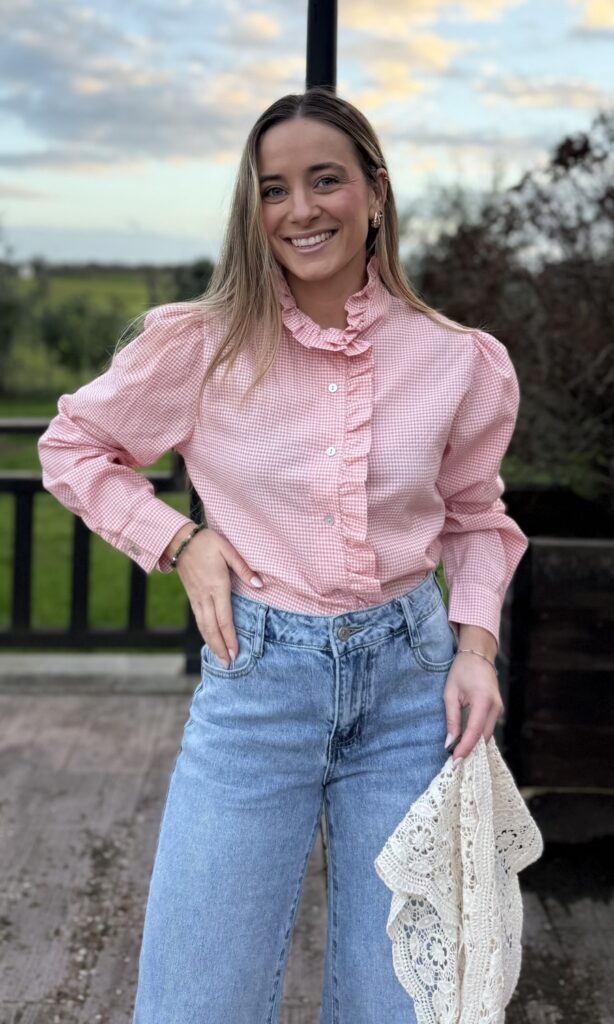 BLUSA CUELLO ALTO VICHY AMARILLO