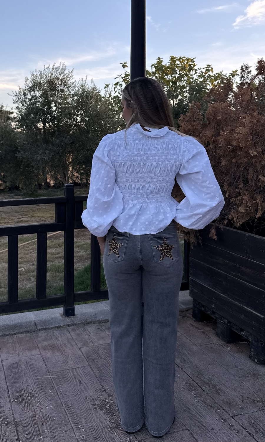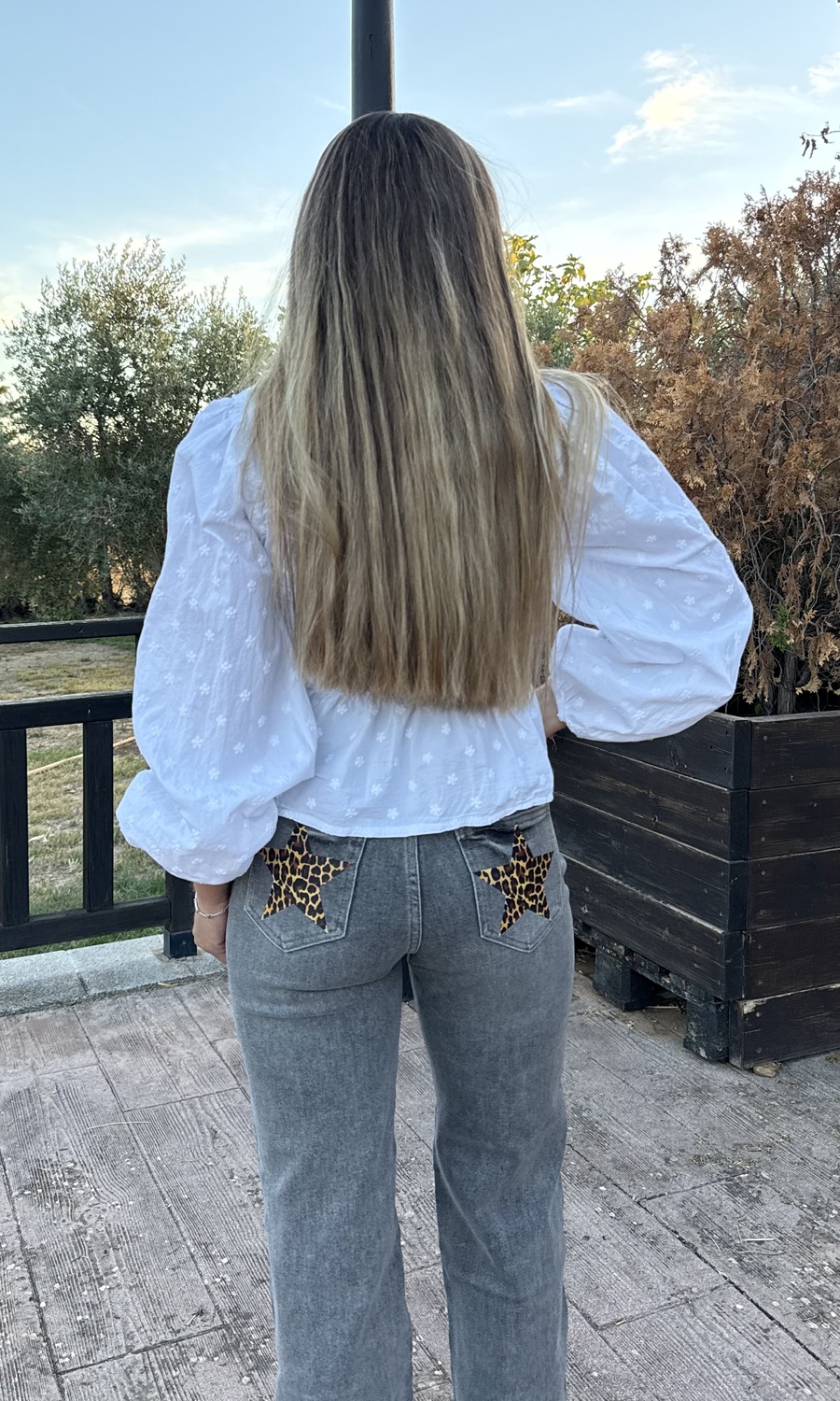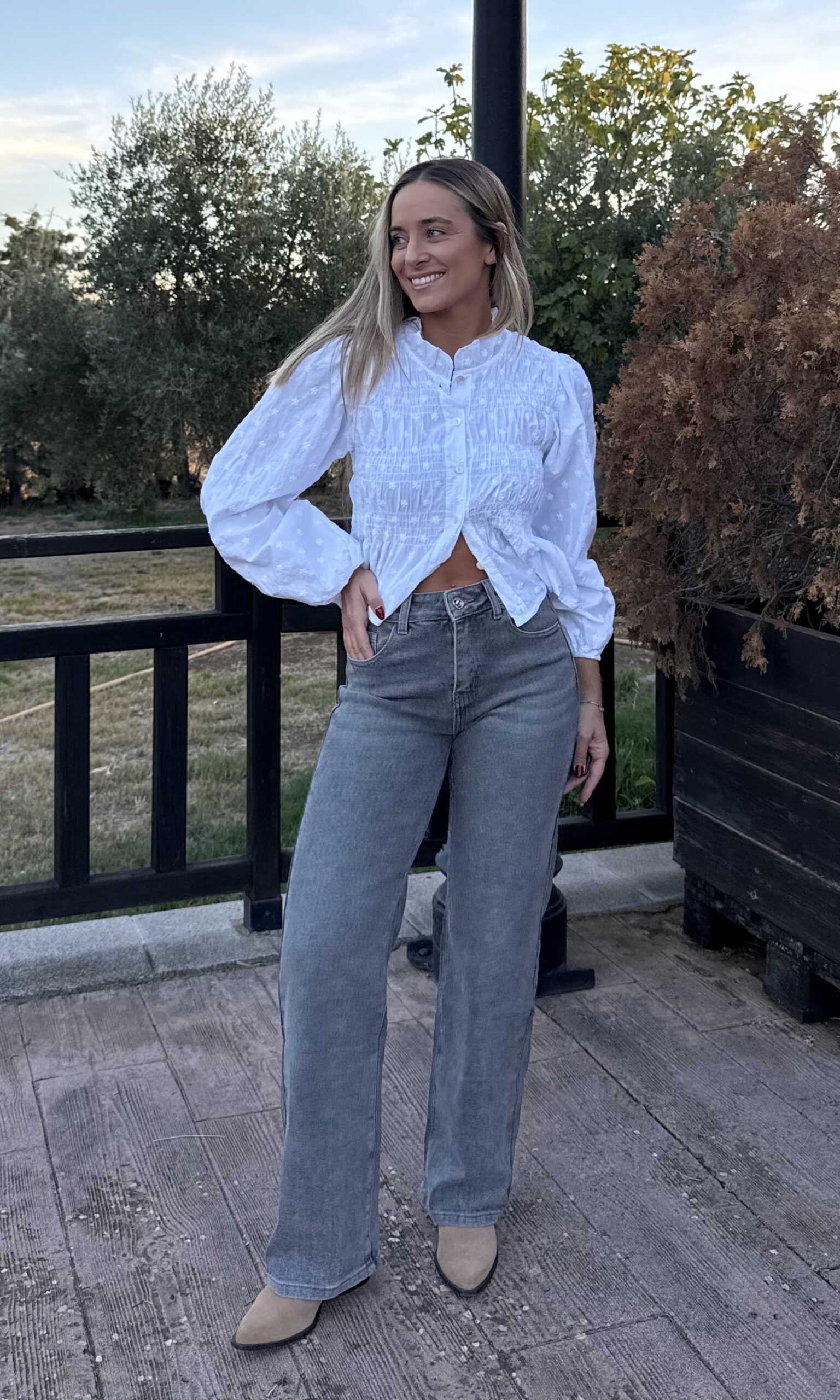 Vaquero wide leg. Recomendamos que pidas tu talla habitual.