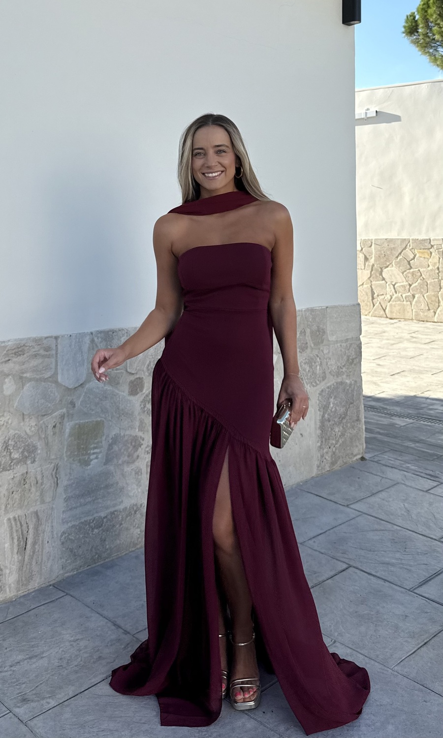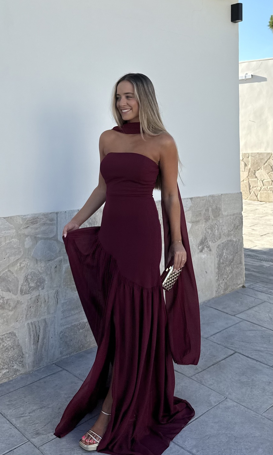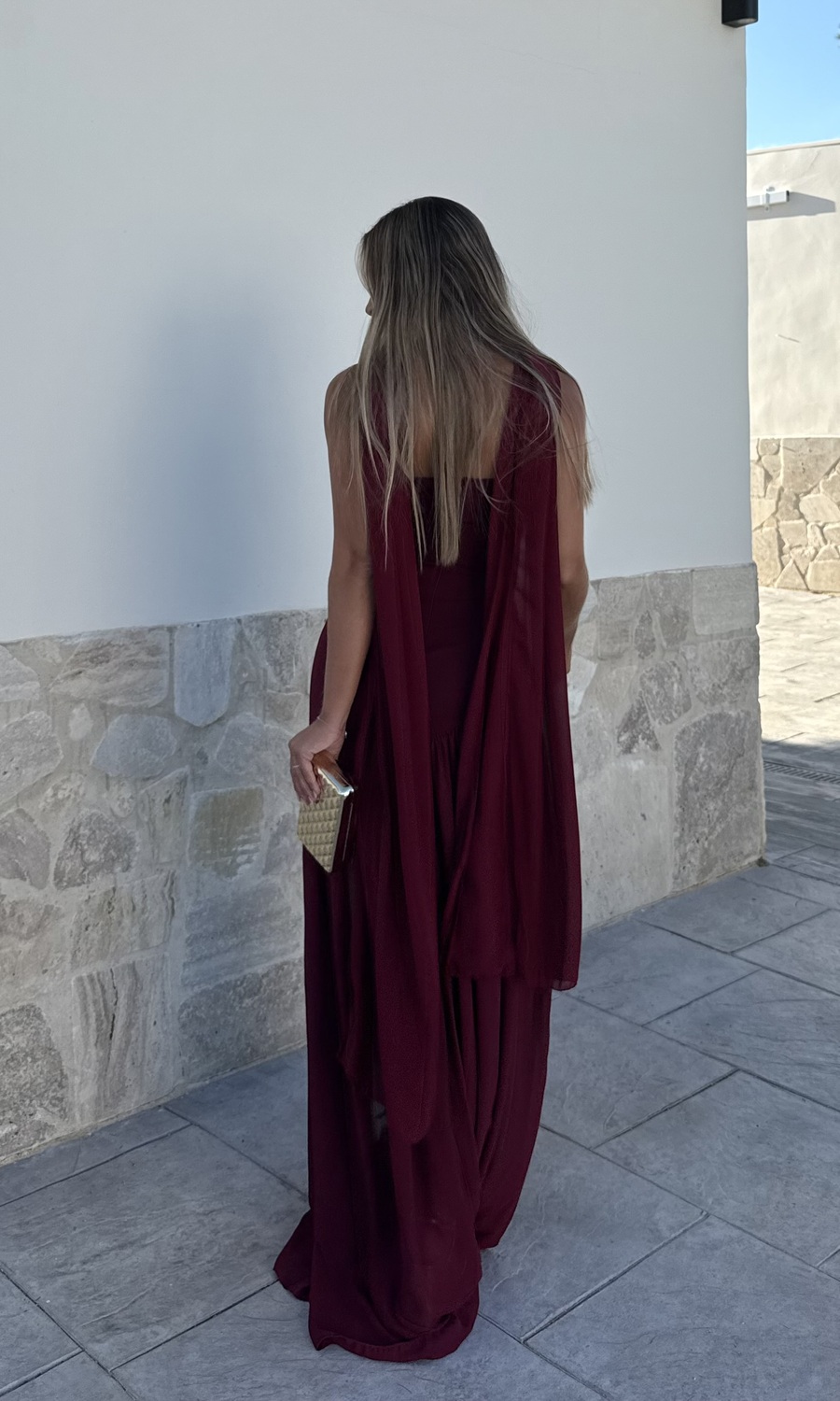 VESTIDO COMBINADO BURDEOS