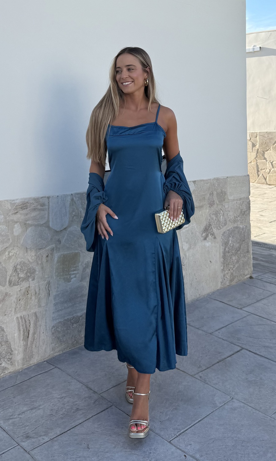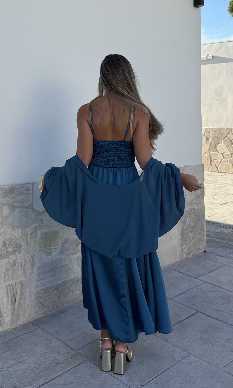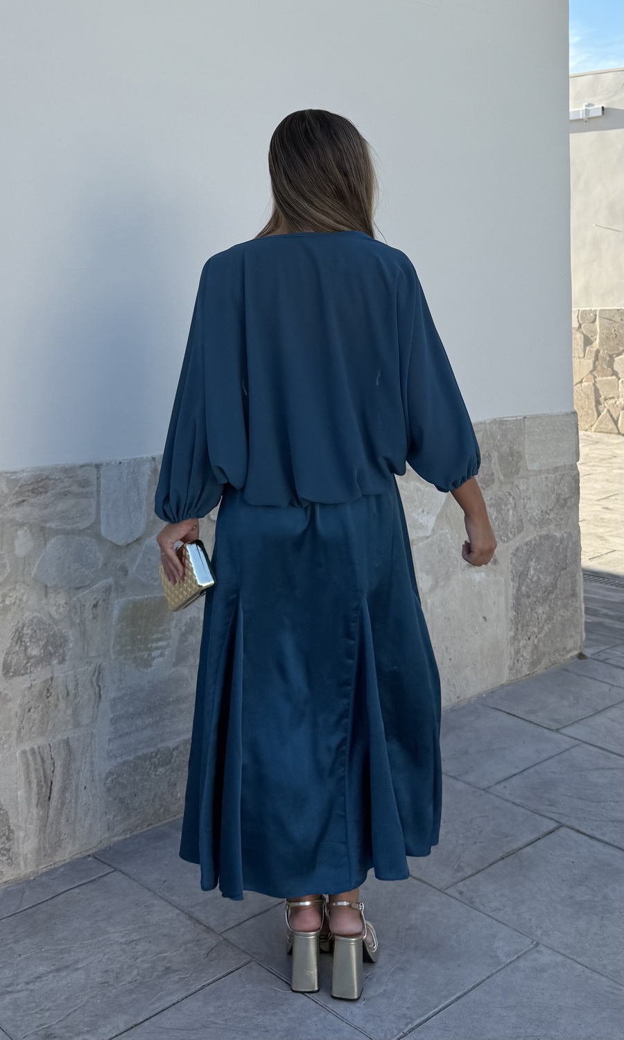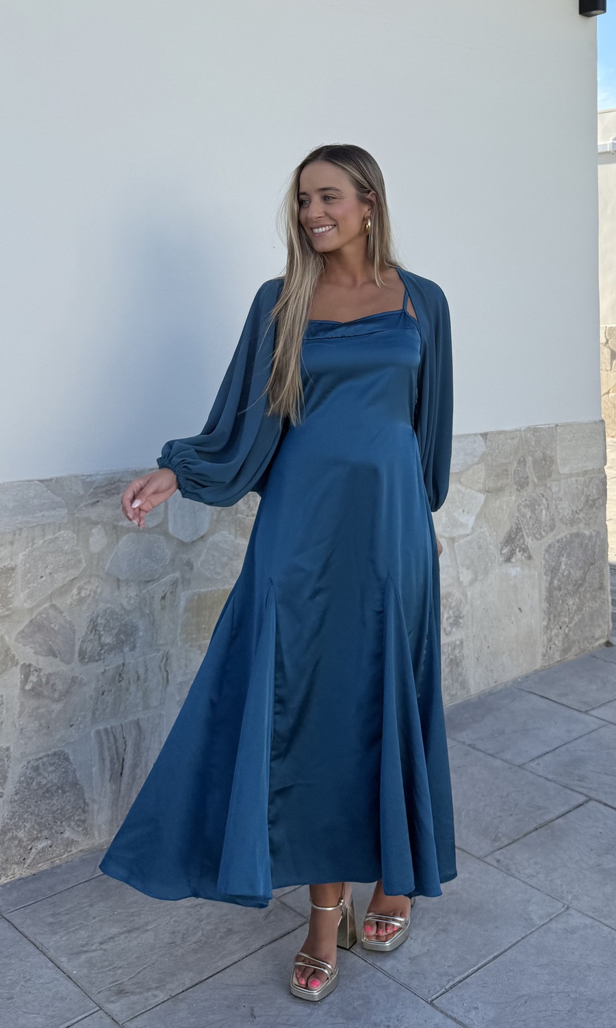 VESTIDO CON CAPA PETRÓLEO