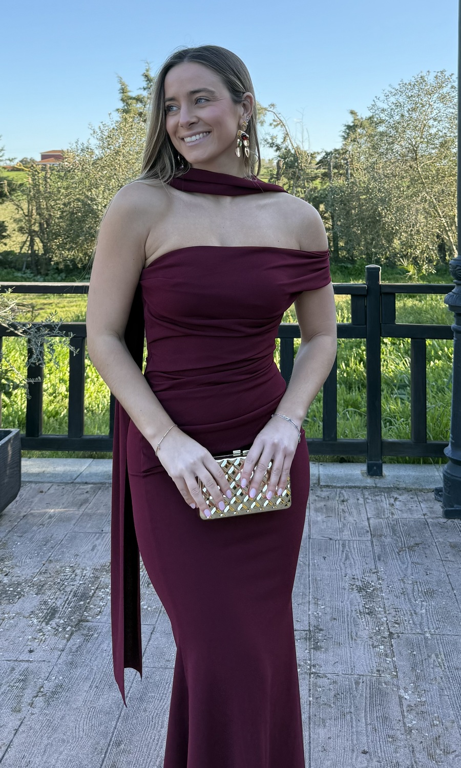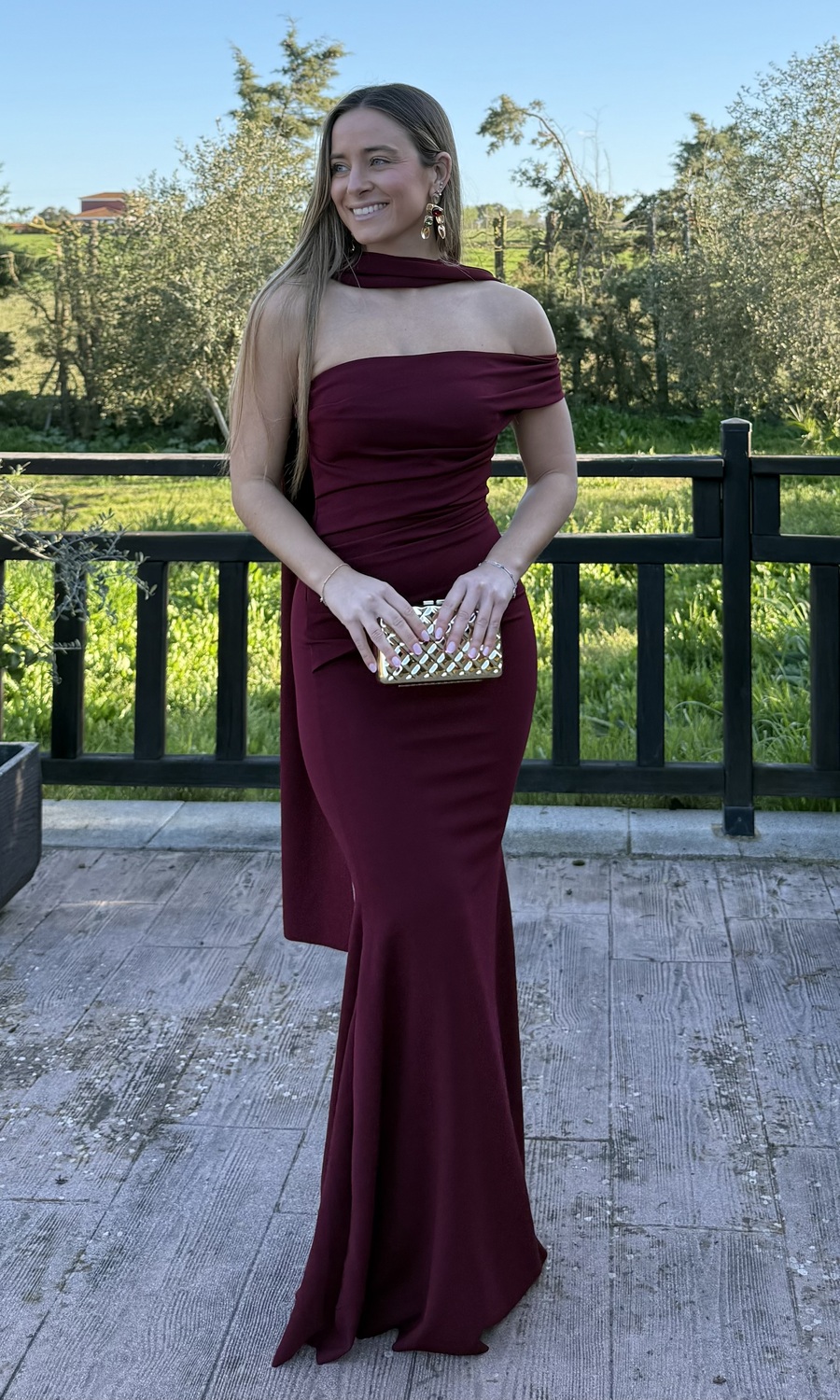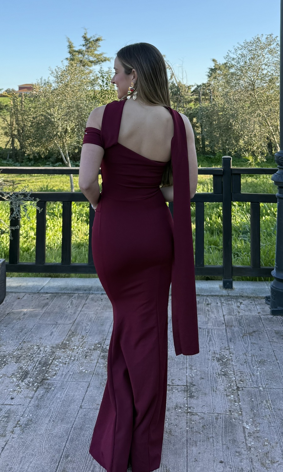 VESTIDO DRAPEADO ASIMÉTRICO BURDEOS