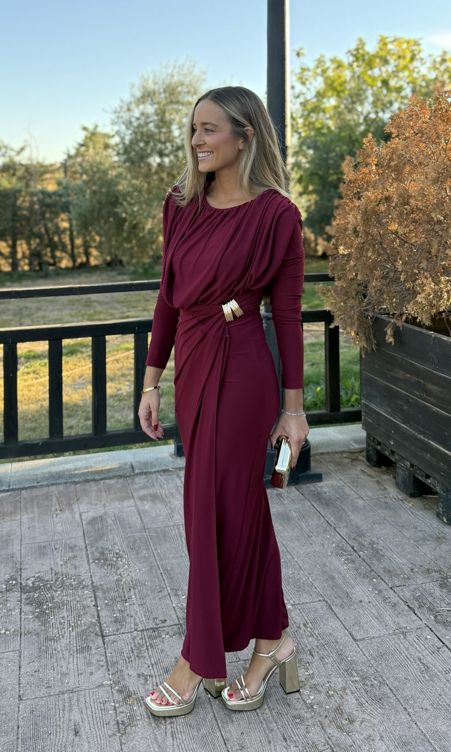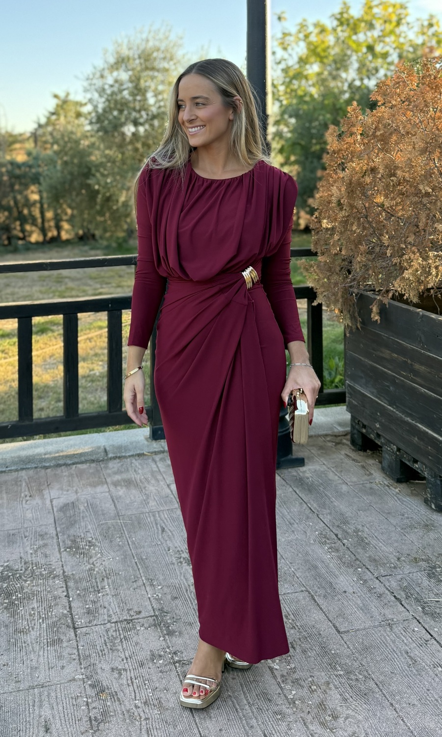 VESTIDO FRUNCIDO MIDI BURDEOS