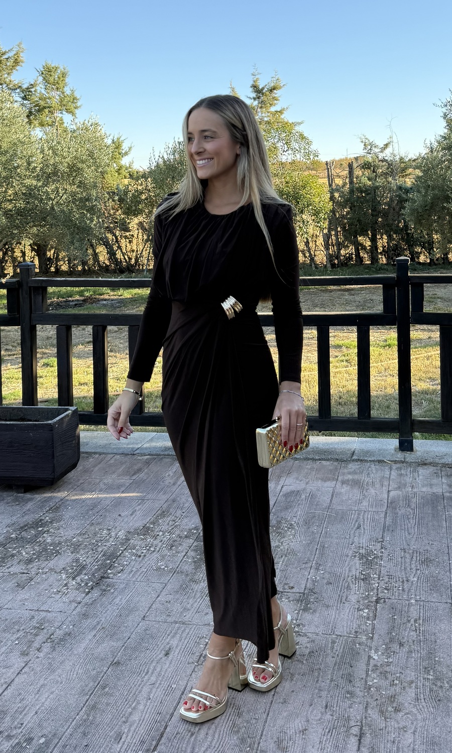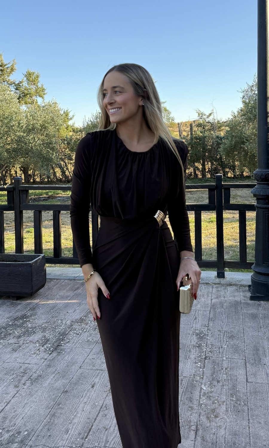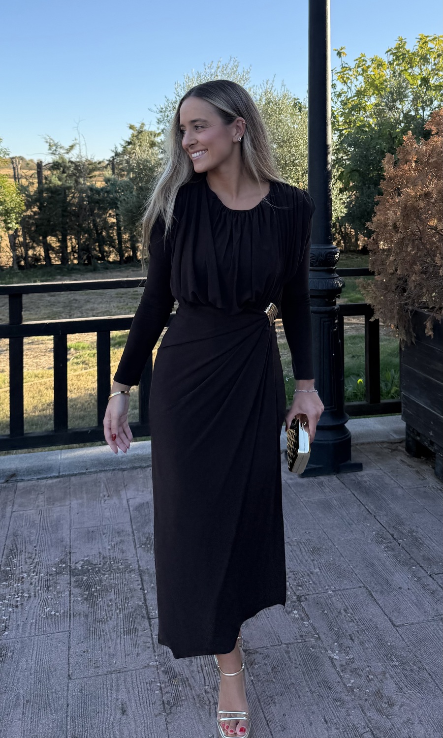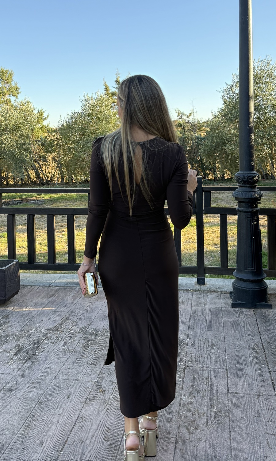 VESTIDO FRUNCIDO MIDI MARRÓN