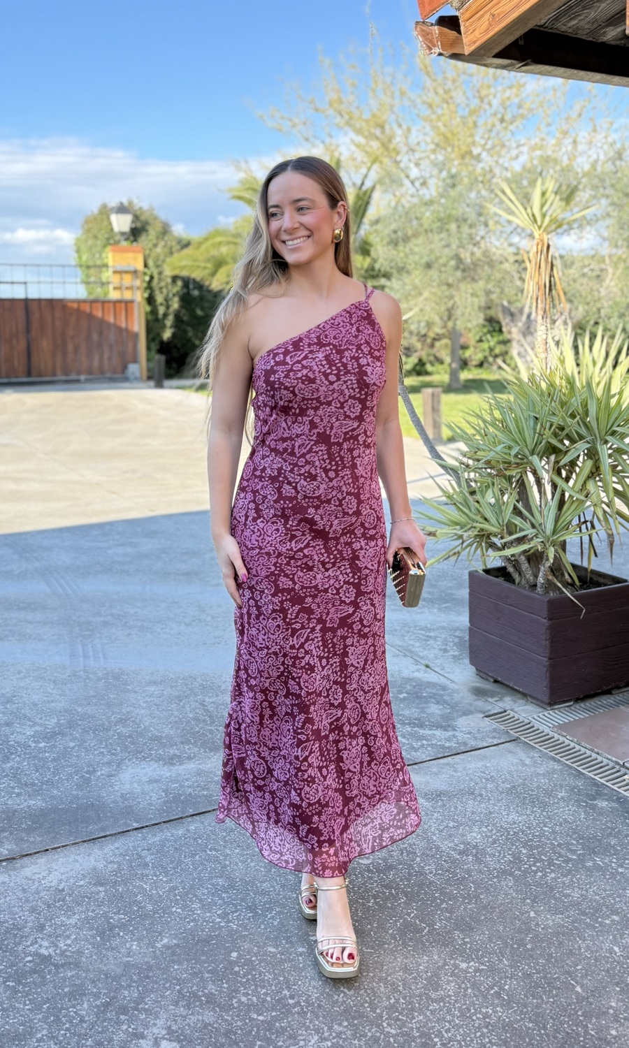 VESTIDO GASA ESTAMPADO ROSA
