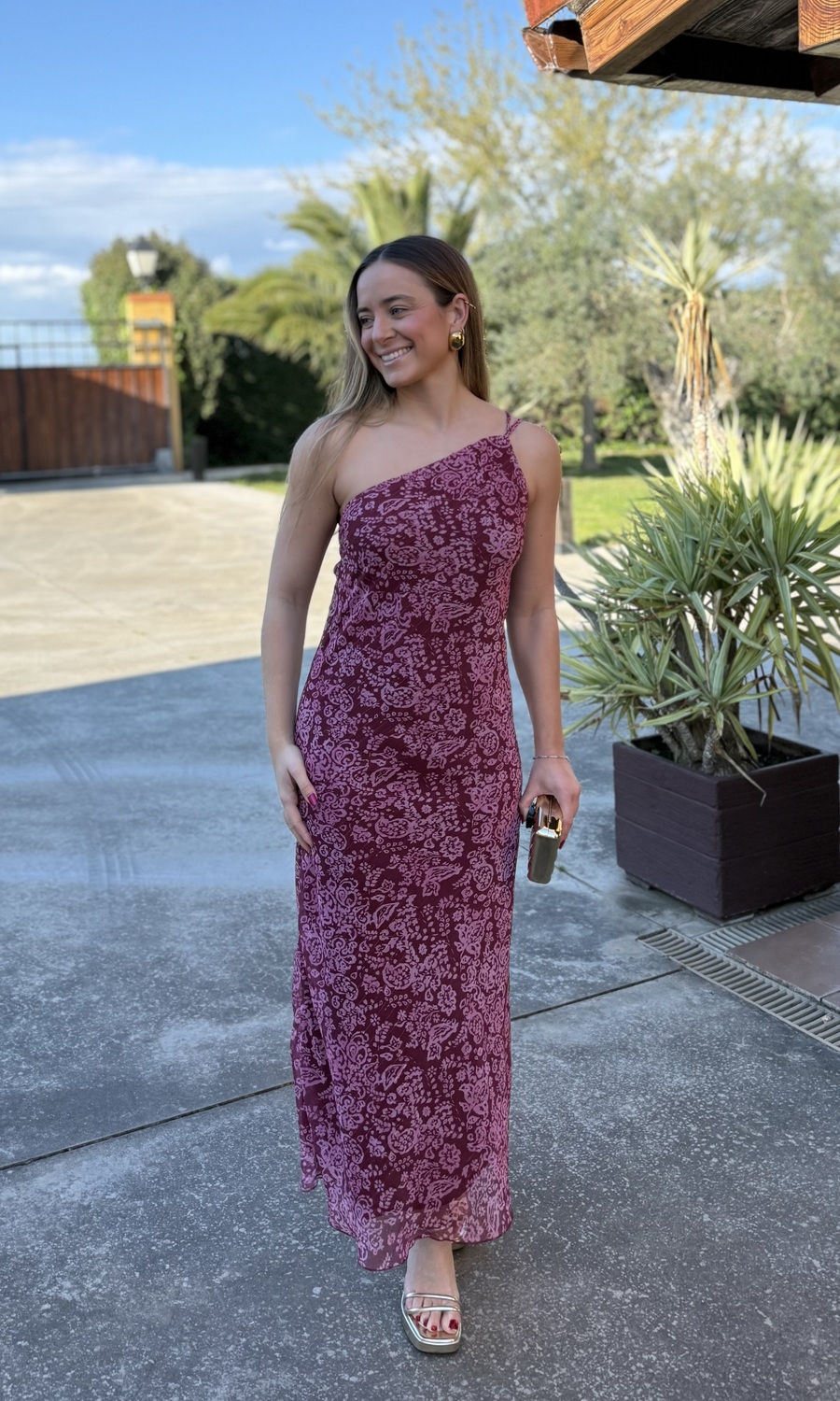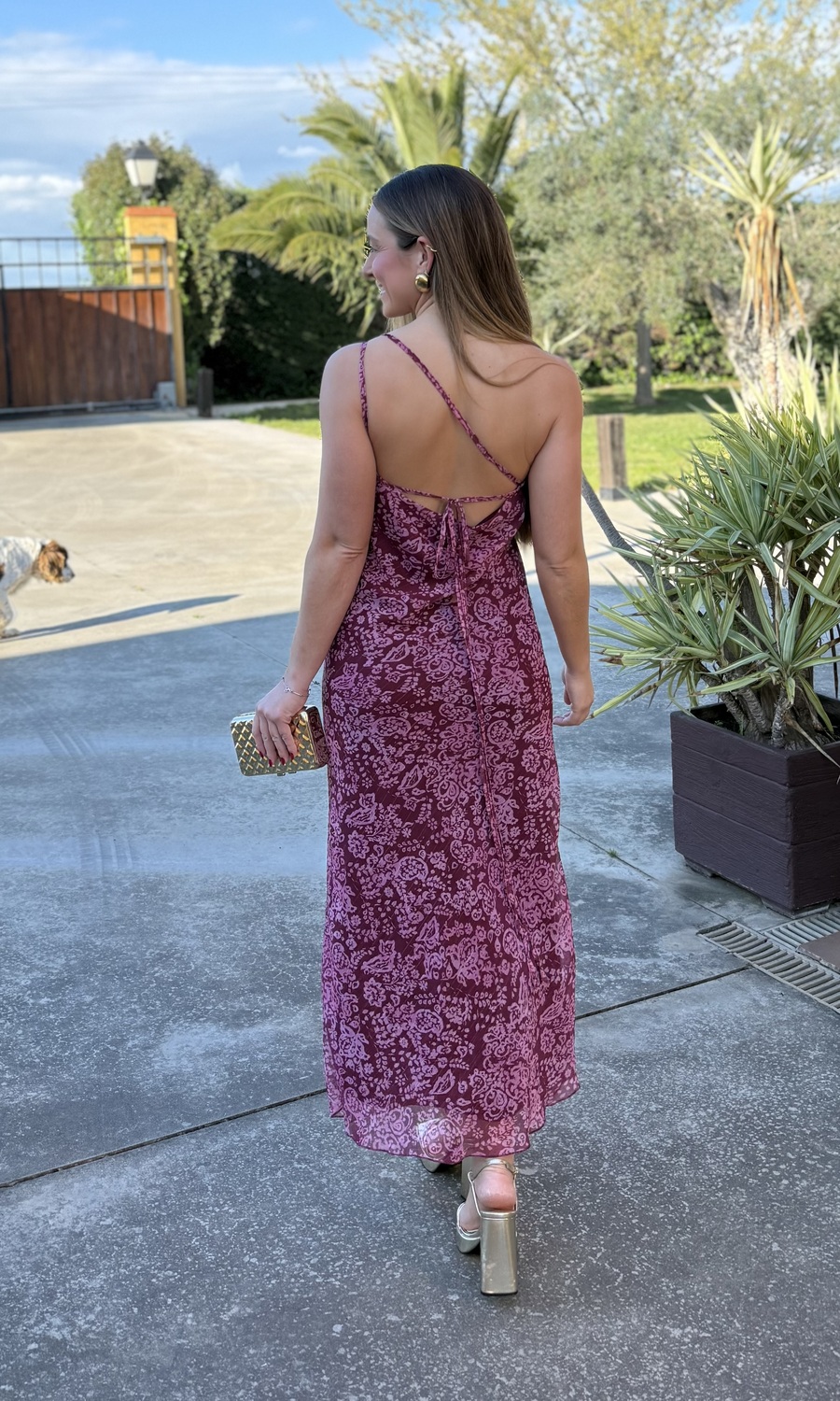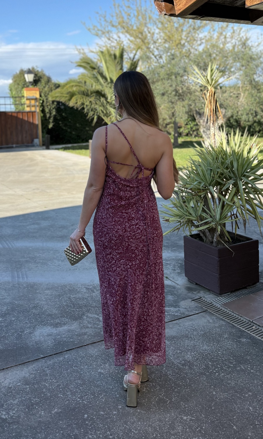VESTIDO GASA ESTAMPADO VINO