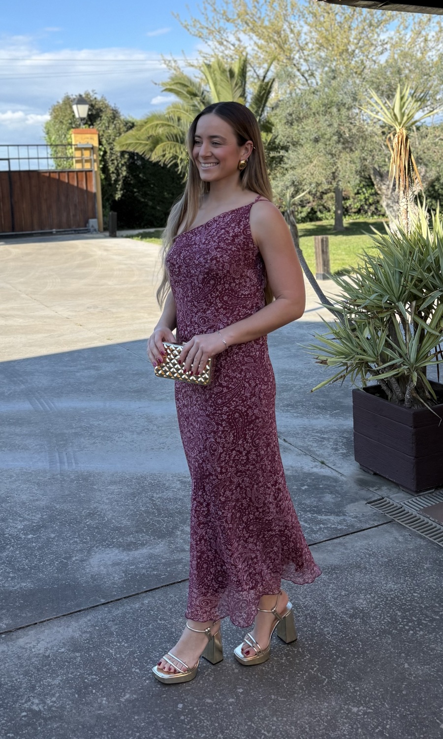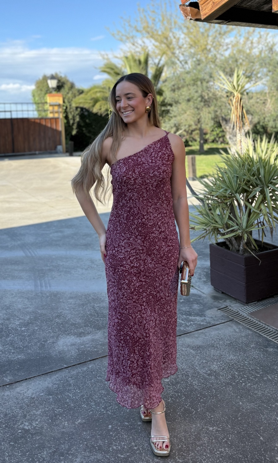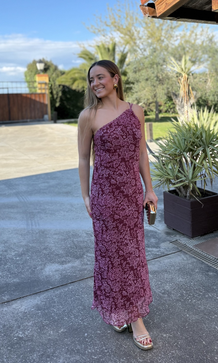 VESTIDO GASA ESTAMPADO VINO