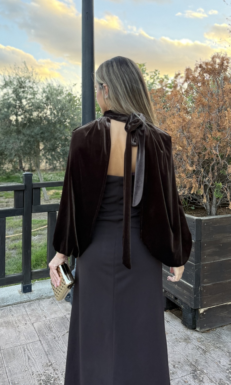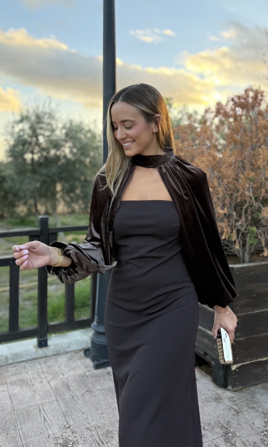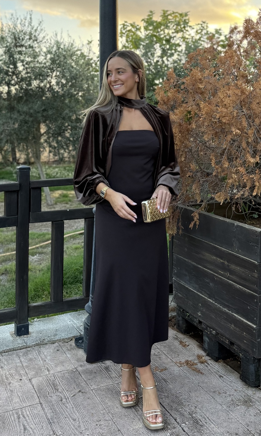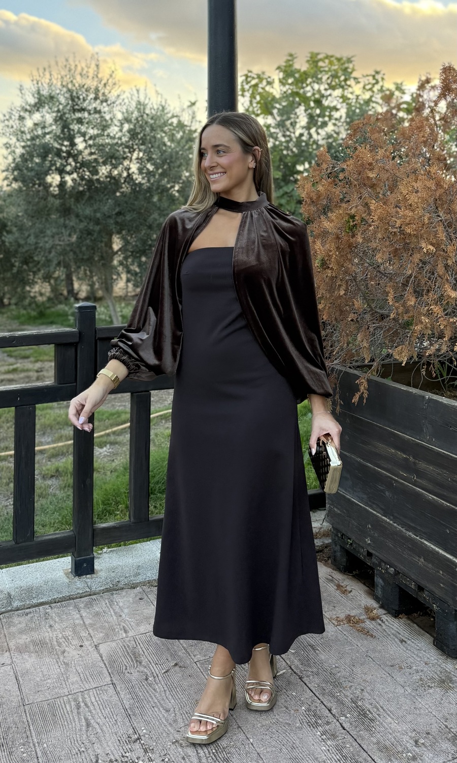 VESTIDO MANGAS TERCIOPELO MARRÓN