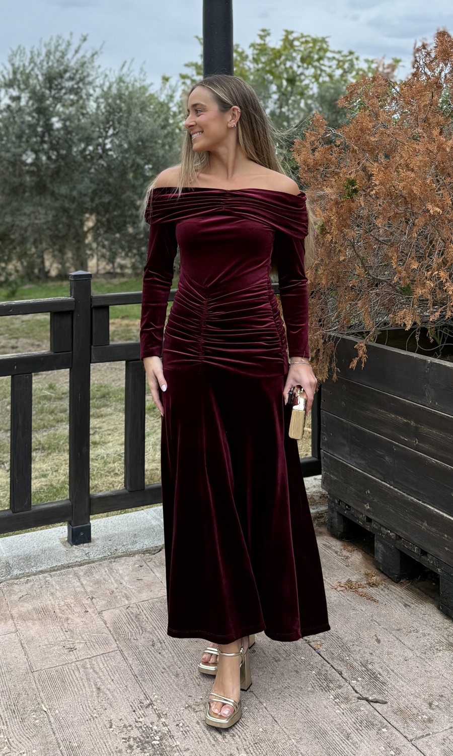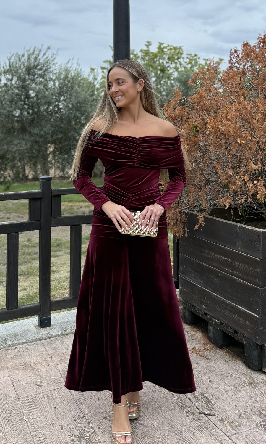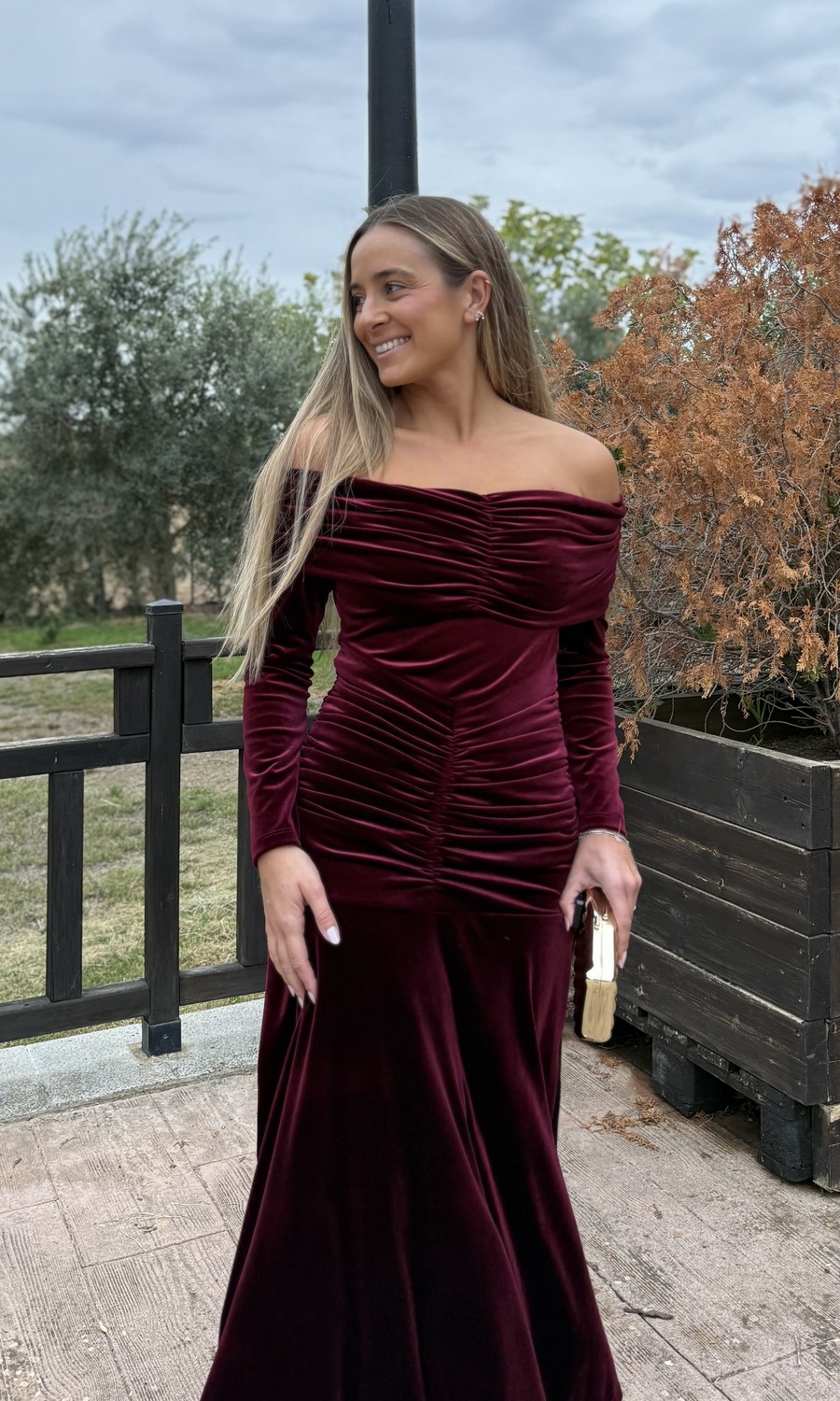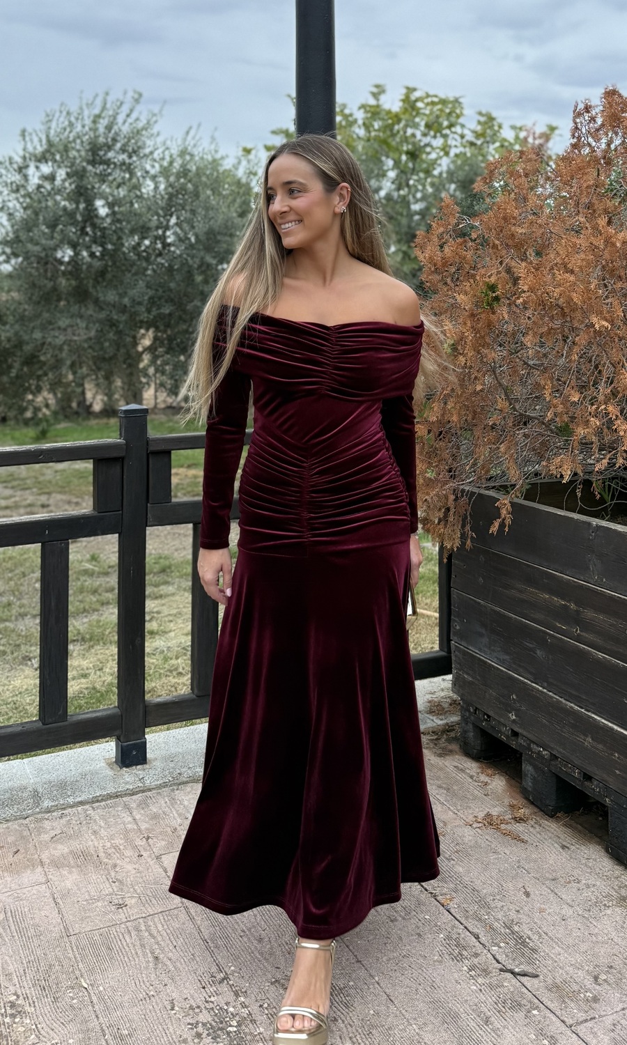 VESTIDO PALABRA DE HONOR TERCIOPELO BURDEOS