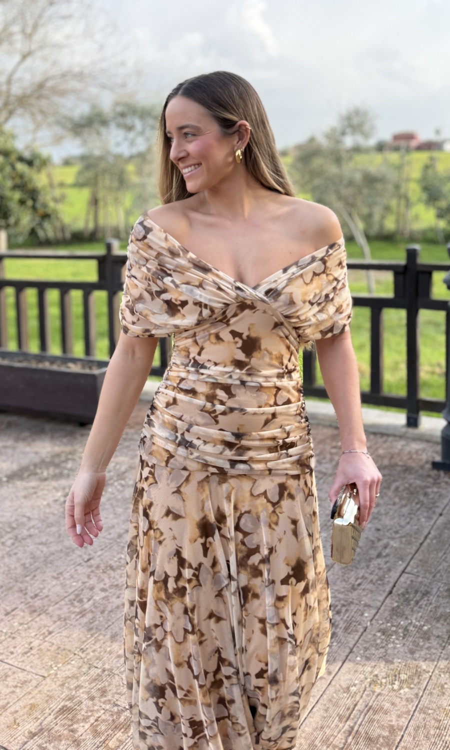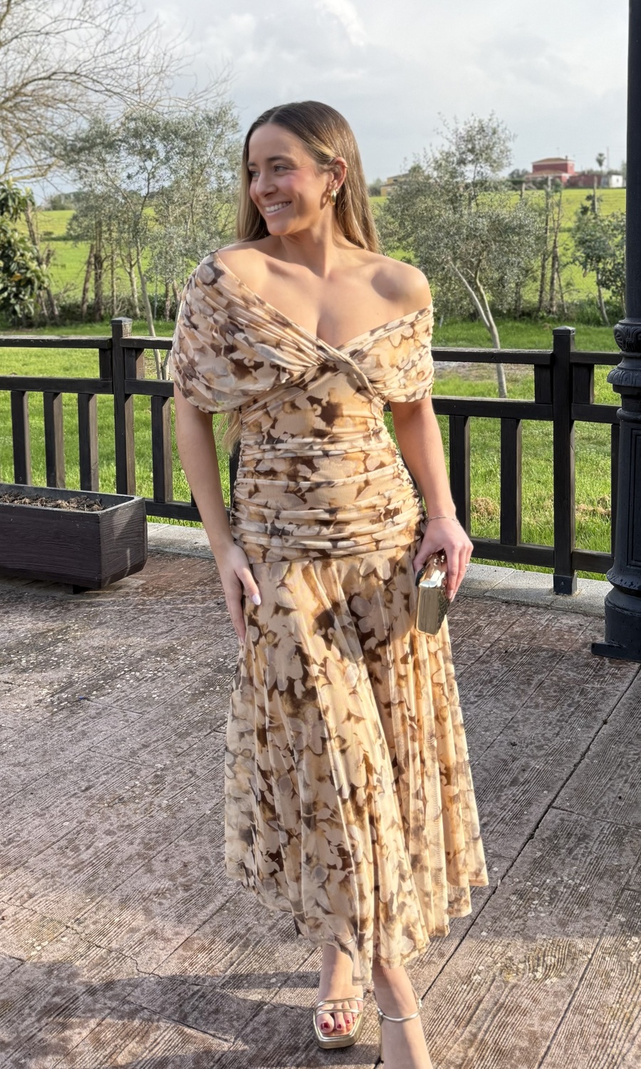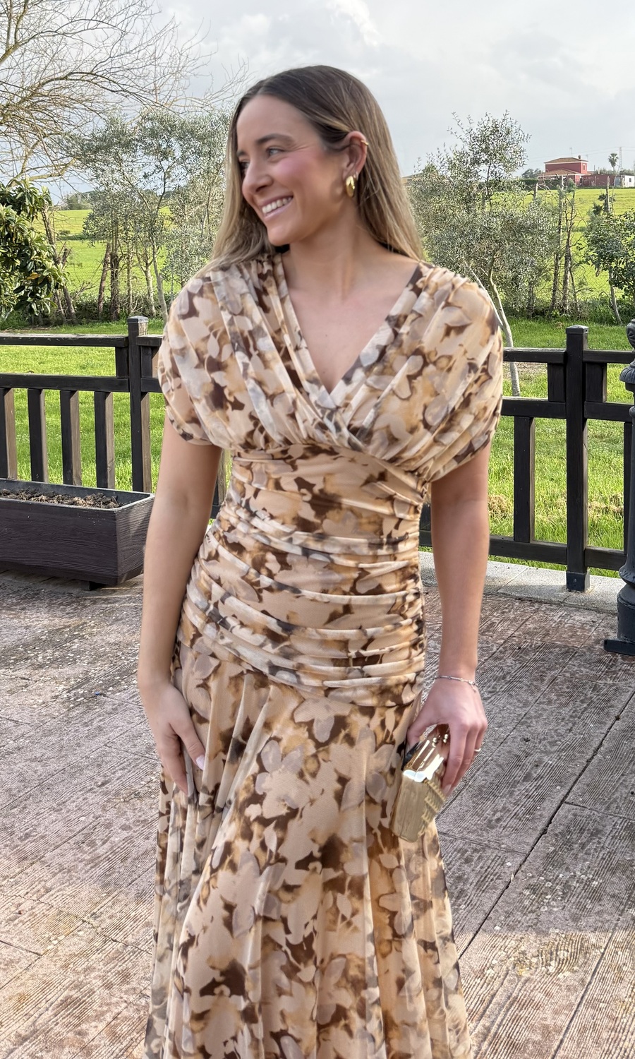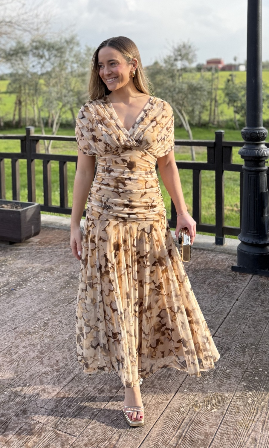VESTIDO TULL ESTAMPADO MARRÓN