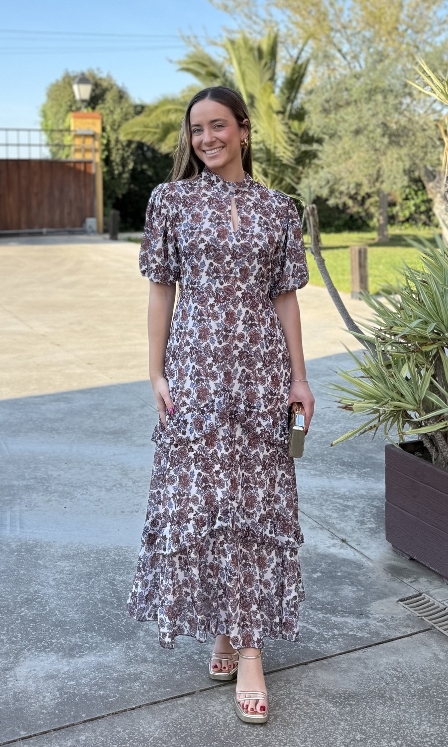 VESTIDO VOLANTAS MANGA CORTA MARRÓN